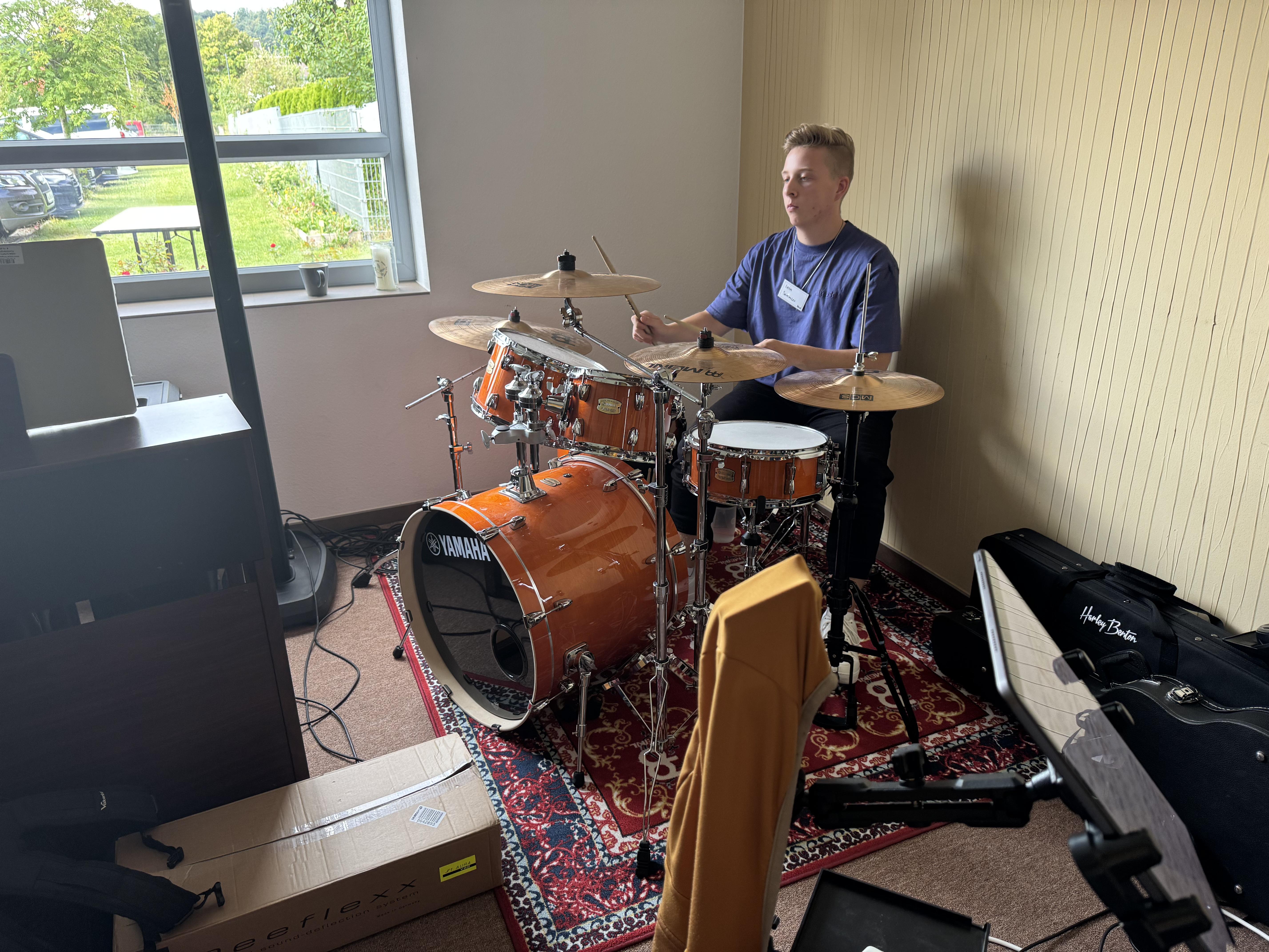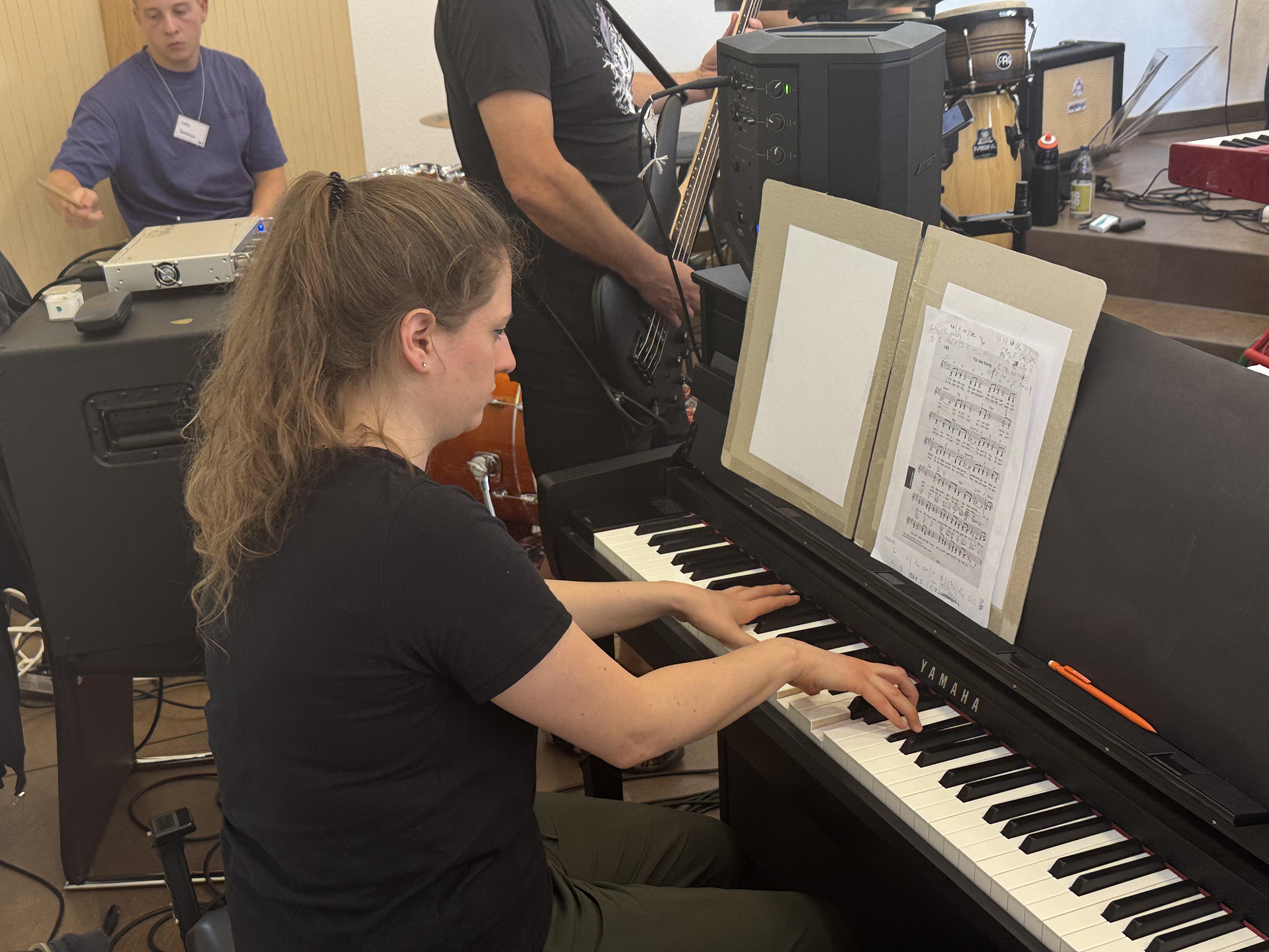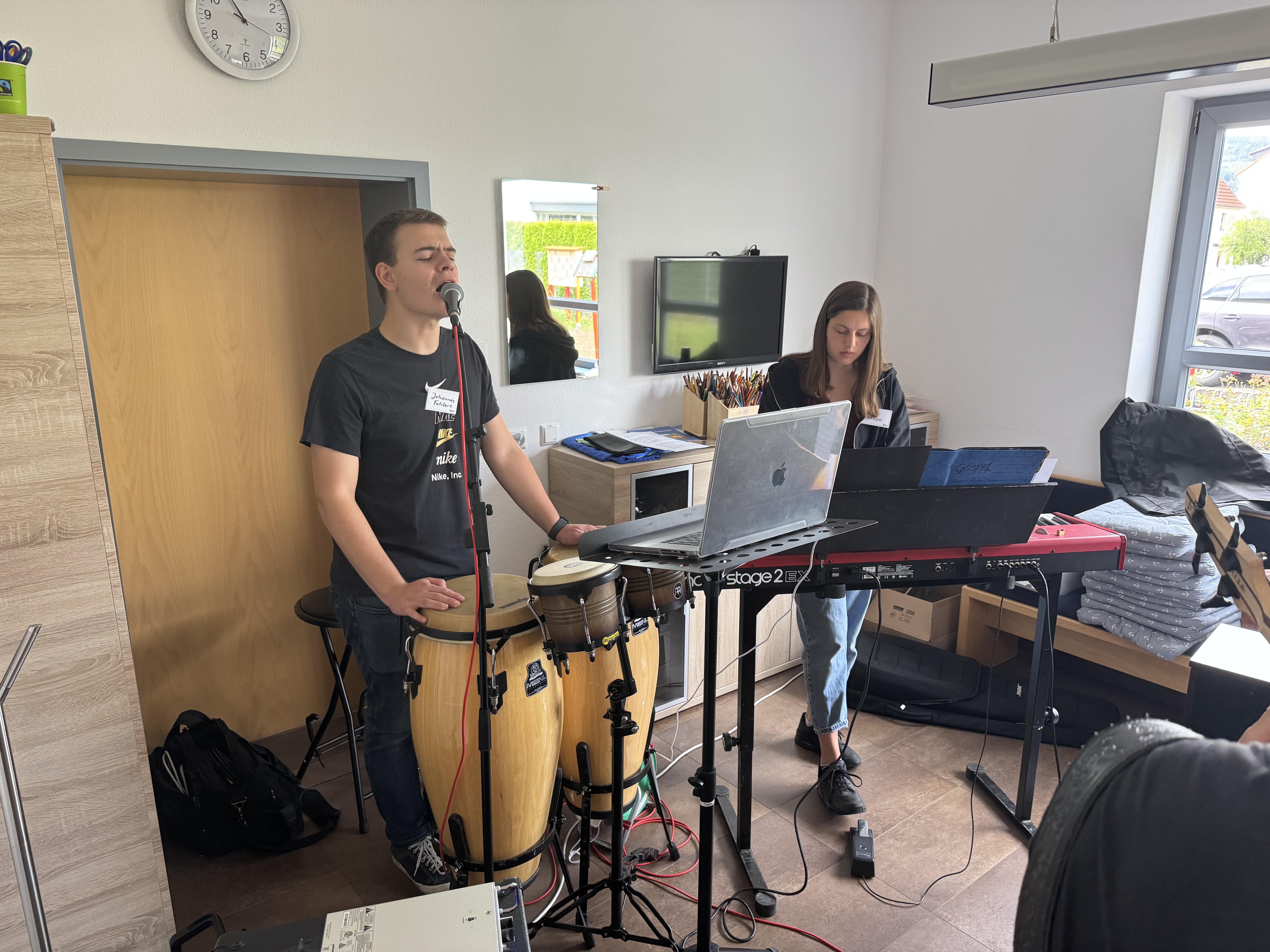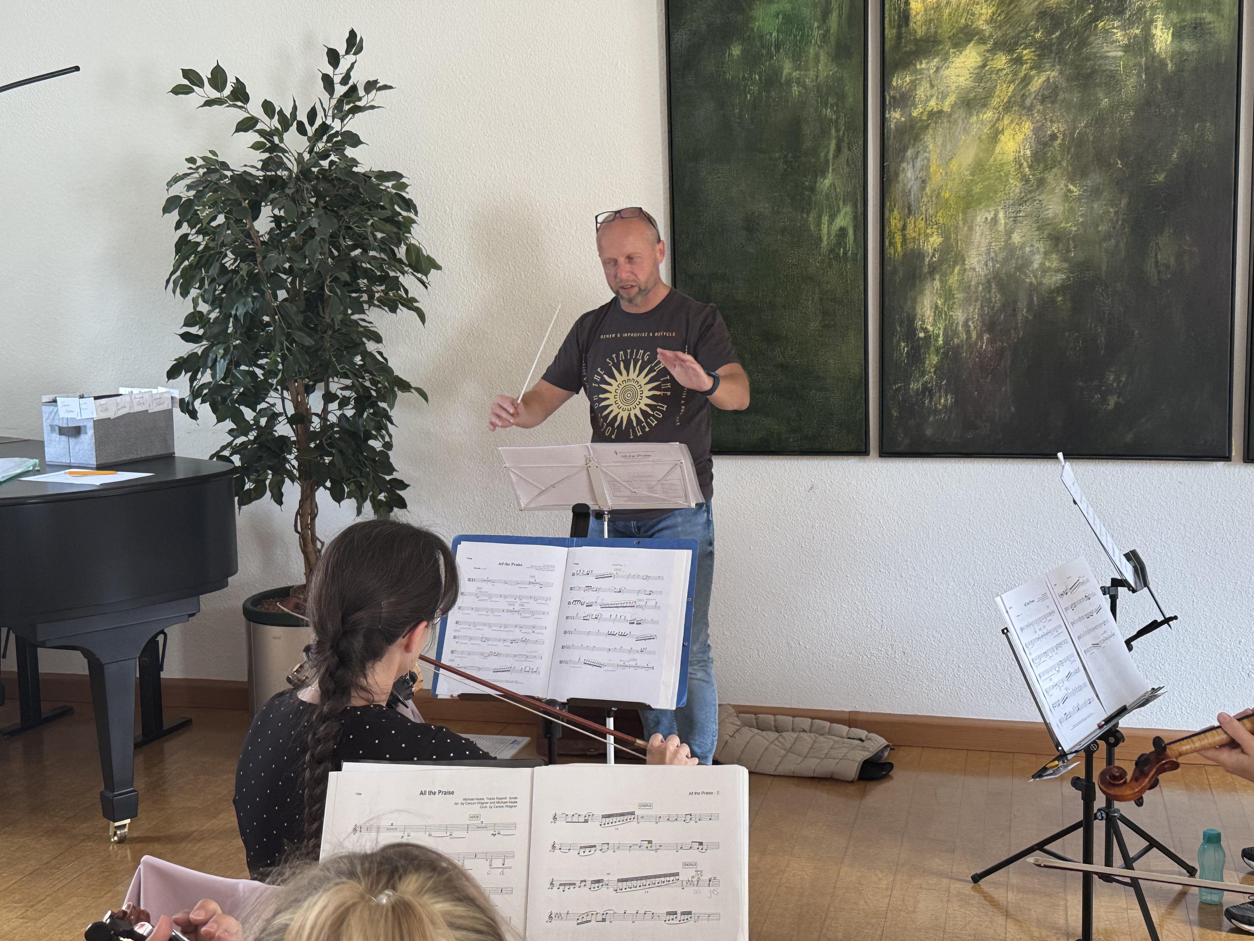 In der Neuapostolischen Kirche Ilmenau probten die Sängerinnen und Sänger zusammen mit der Band. Es wurde intensiv an Dynamik, Rhythmus und Ausdruck gearbeitet. Trotz konzentrierter Arbeit war die Atmosphäre von Freude geprägt. Immer wieder gab es Szenen, in denen man merkte: Jetzt passt alles zusammen – Chor, Band und Leitung auf einer Wellenlänge.